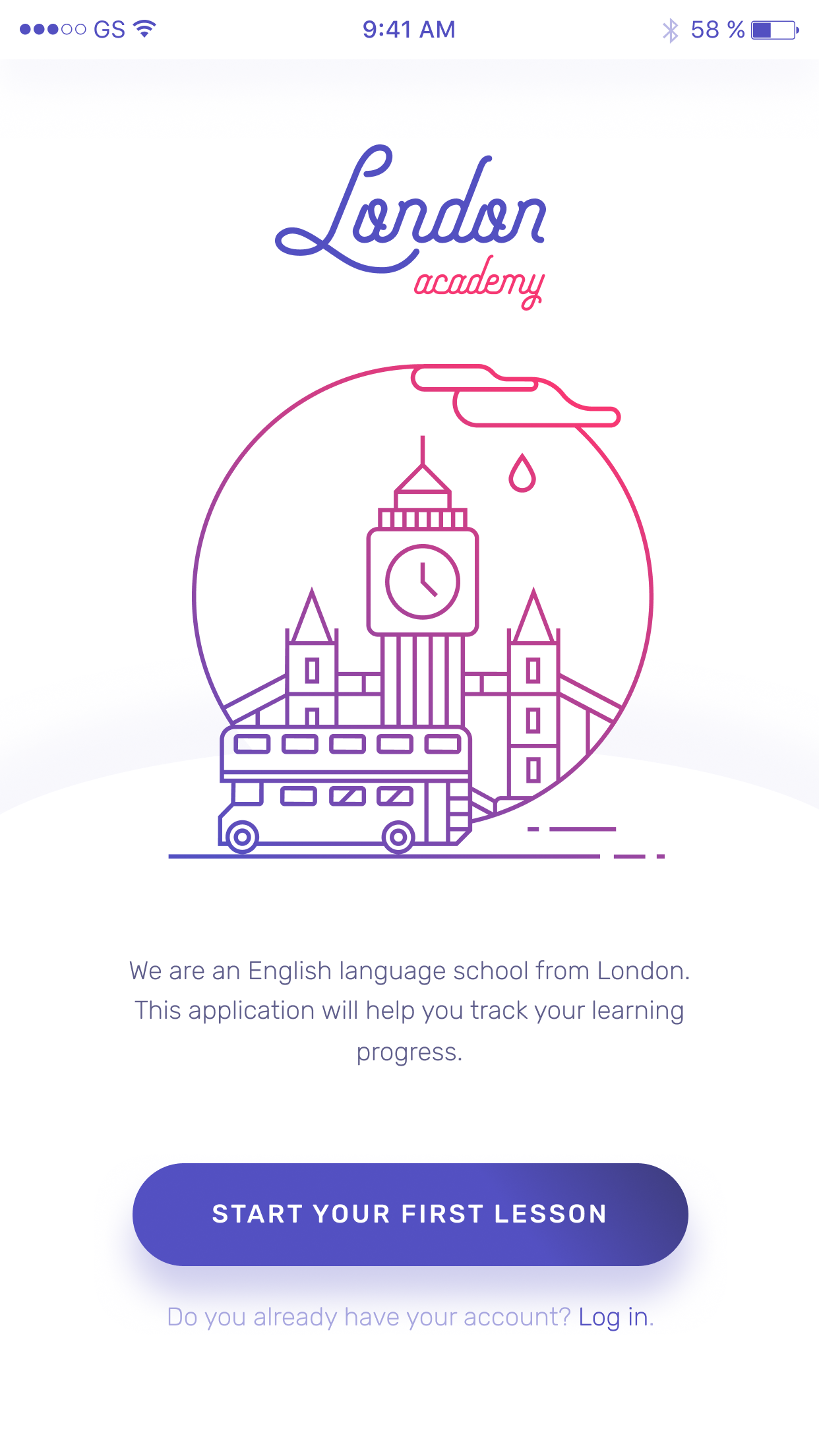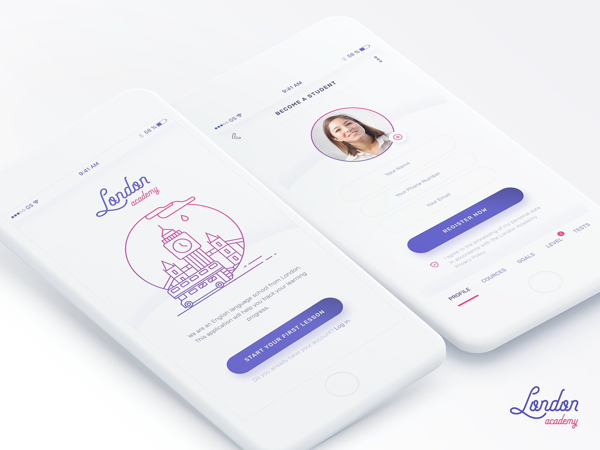 My favorite fun in my free time. Designing mobile applications. This time, splash screen and sing in screen for School of foreign languages from London :)